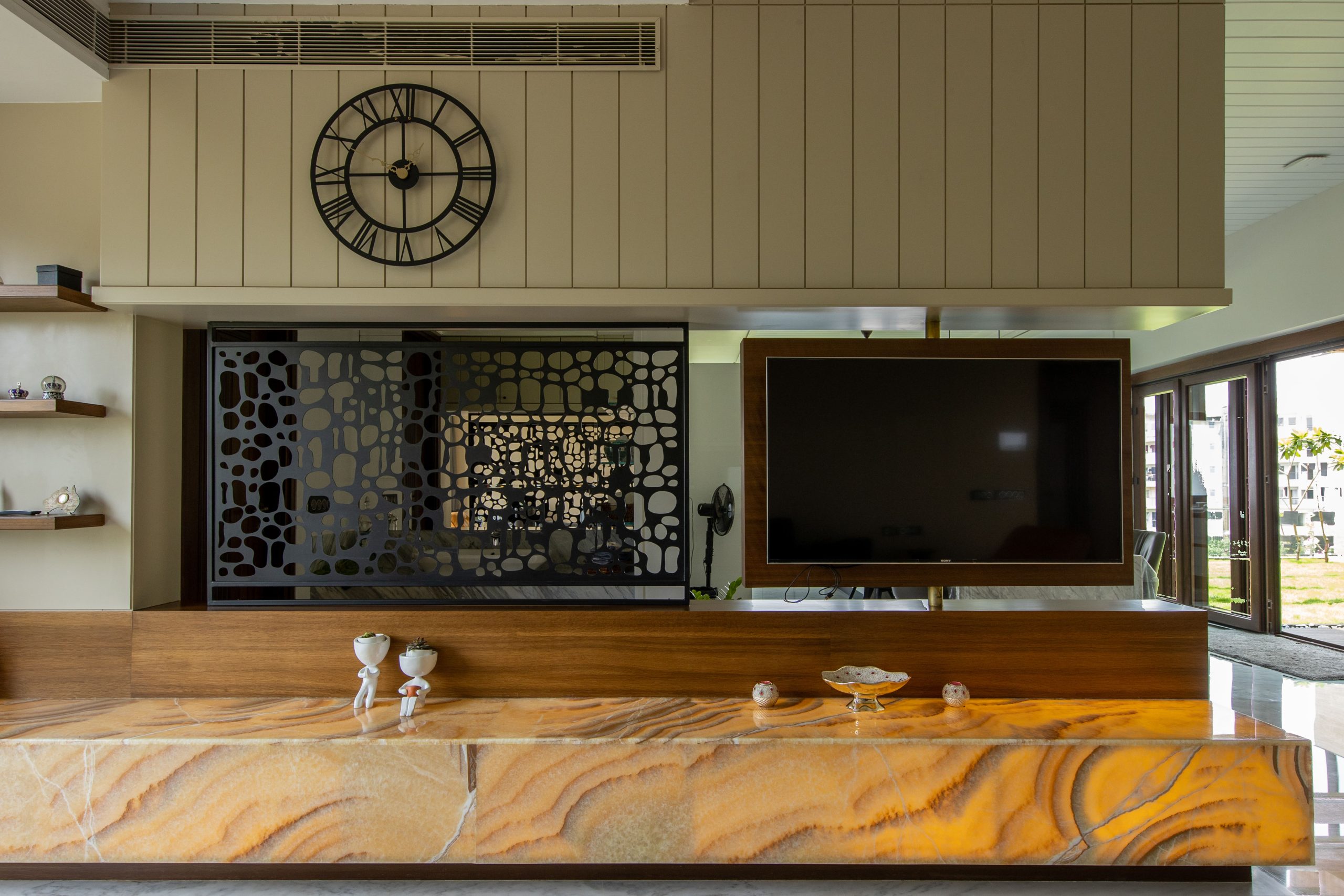 Elevate your living room with the timeless elegance of natural stone, blending luxury, warmth, and modern design.